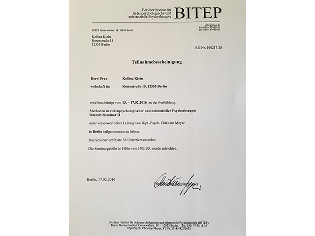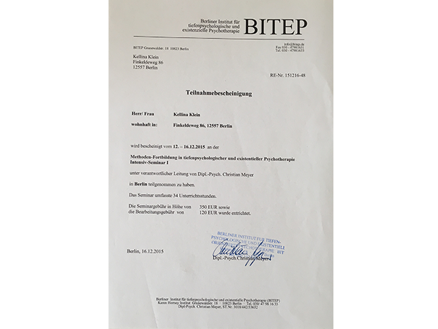 - Integrative Psychotherapie, Institut Christoph Mahr, Berlin