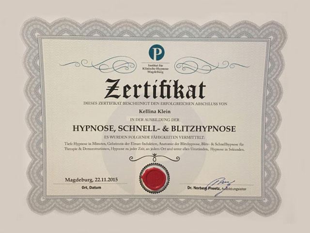 - Hypnose Master, Dr. Norbert Preetz, Institut für klinische Hypnose, Magdeburg
