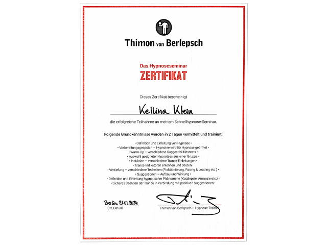 Hypnose Seminar, Thimon von Berlepsch, Berlin